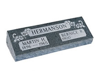 Bevels are those memorials that are slightly taller in the back than the front and have a “beveled” lettering face. They are usually 6 - 8 inches at their tallest point in the back and around 4 - 6 inches at the front. They are sold in granite or Georgia Marble.